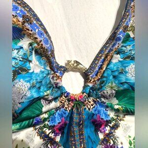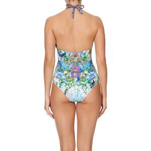 NWT Auc CAMILLA HALTER ONE PIECE "Moon Garden" o ring detail SWIMSUIT XS