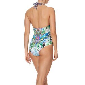 NWT Authentic CAMILLA HALTER ONE PIECE "Moon Garden" SWIMSUIT SIZE XS. From the Moon Garden Collection. This jungle printed swimsuit is defined by a center ring clasp and tied halter straps. Tied halter neck Front ring clasp Moderate coverage Removable foam pads Lined gusset Nylon/elastane Hand wash Imported SIZE & FIT About 18.5" from shoulder to hem. Outerwear And Swimwear - Contemporary Swim > Saks Fifth Avenue > Barneys. Camilla. Color: Moon Garden.