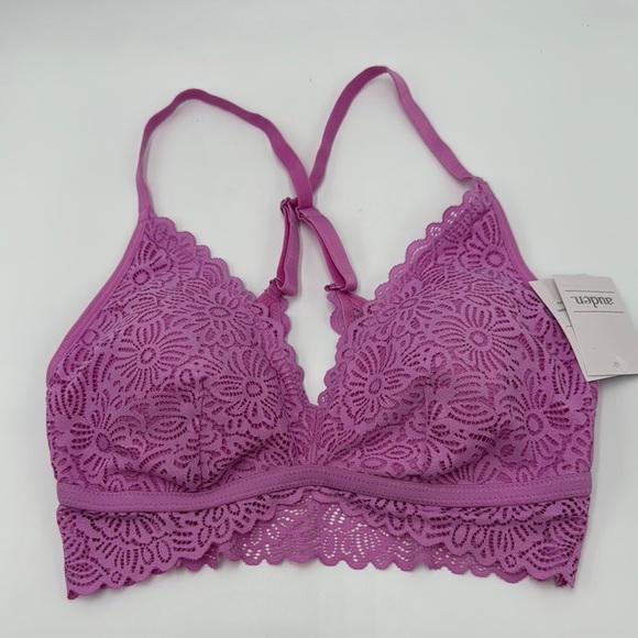 Brand new with tags Auden lace bralette in a beautiful mauve shade. Size Small. Features a lightly lined design, crossback style, adjustable straps, and removable pads. Soft, stretchy, and perfect for everyday wear or layering. Pullover style with floral lace detail adds a feminine touch. Style code: M99925M.