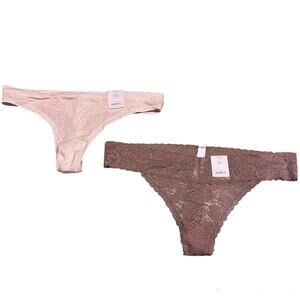 NWT Auden Pair of Two (2) Thong Underware Women's L Large. Ultra Soft Thong and Lace Thong. Pink and White and Rosy Cocoa Color. Brand New with Tags!