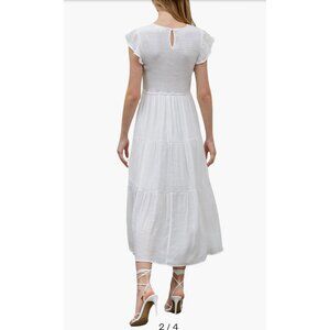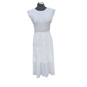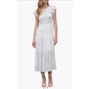 NWT August Sky Womens Smocked Tiered Midi Dress White Size Medium