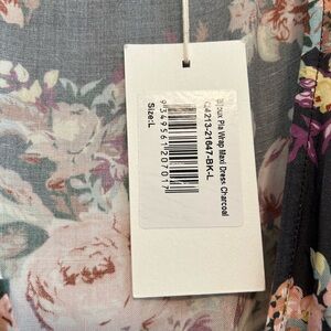 NWT Auguste The Label Wrap Dress High Low Charcoal Floral Print Size Large