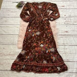 New with tags Aura the Label maroon red colored vintage floral peasant maxi dress