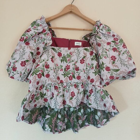 NWT Aureum Floral Puff Sleeve Peplum Blouse Women's Small