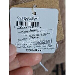 The Aurora - Small Taupe Valentine Jolie Bear is a 6.5" stuffed animal perfect for Valentine's Day gifting. This heartwarming teddy bear in brown color is ideal for children of all ages and is sure to bring joy and love to any recipient. Made by Aurora World, known for its quality plush toys, this adorable bear is a charming addition to any teddy bear collection.