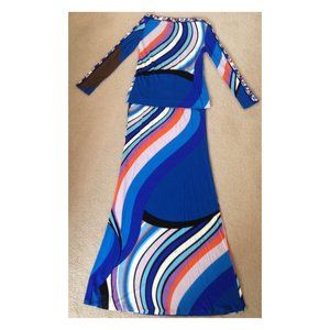 NWT Auth Pucci blue purple orange black white 2 pc top maxi skirt set IT 40 US 4
