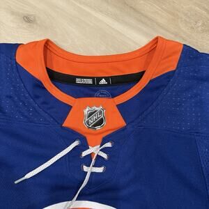 The product is a new Adidas NHL New York Islanders authentic home hockey jersey in size 54. It is officially licensed by the National Hockey League (NHL) and features the team's iconic blue color. Made for men, this jersey is a must-have for any fan of the New York Islanders looking to represent their favorite team on and off the ice. Created in Indonesia, this high-quality jersey is perfect for showing support for the team during games or casual wear.