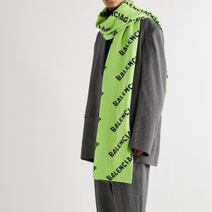 NWT Authentic Balenciaga - Neon Logo-Jacquard Wool-Blend Scarf - Green