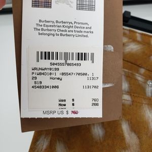 NWT Authentic Burberry Camel Women's Denim Pants Size w29