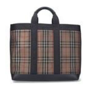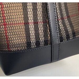 Black and beige ‘Ormond’ shopper bag from Burberry. Made of fabric with mesh and calf leather trims, this model is decorated with the brand’s signature check and complete with two handles and one internal compartment with one zip pocket and two slip pockets.