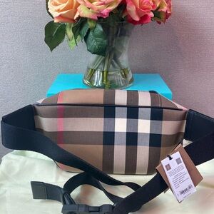 NWT Authentic Burberry Taupe Brown IP Check Canvas Sonny Belt Bag - $910 Retail