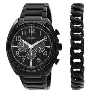 NWT Authentic Citizen Chronograph Black Dial Men's Watch and Bracelet Box Set