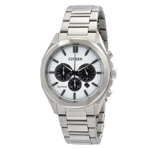 NWT Authentic Citizen Eco-Drive Chronograph White Dial Men's Watch