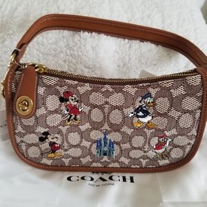 🎀NWT Authentic Disney X Coach Swinger Signature Textile Jacquard Mickey Mouse💖
