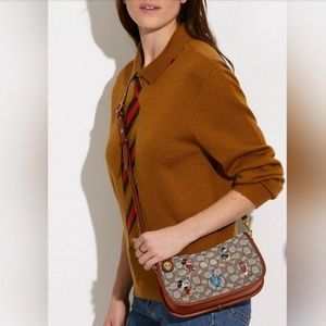 🎀NWT LIMITED EDITION Authentic Disney X Coach Swinger Bag in Signature Textile Jacquard with Mickey Mouse and Friends Embroidery.