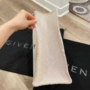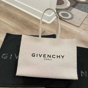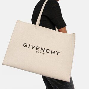 For a spacious bag that's also big on style, look to the G Large tote bag from Givenchy. It's crafted from structured cotton canvas with contrast logo lettering, top handles and frayed edges.