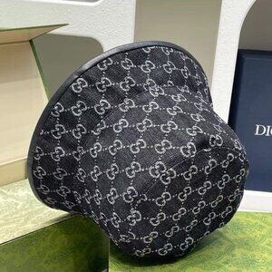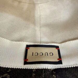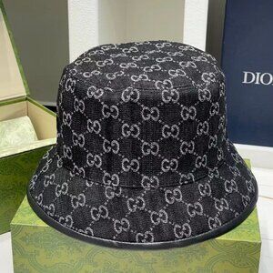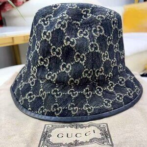 NWT Authentic Gucci GG leather-trimmed denim bucket hat