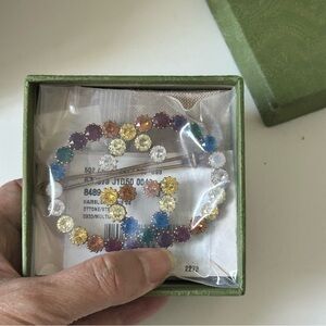 NWT Authentic Gucci Gold-Tone Logo Brooch Rainbow Color Gemstones