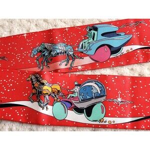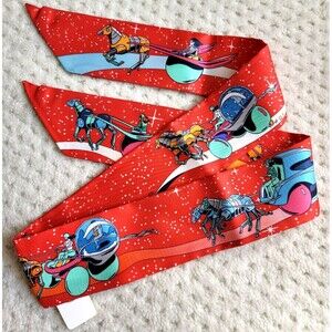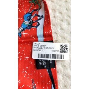 NWT Authentic Hermes SPACE DERBY RED Rouge/Vert/Bleu horse silk Twilly Scarf