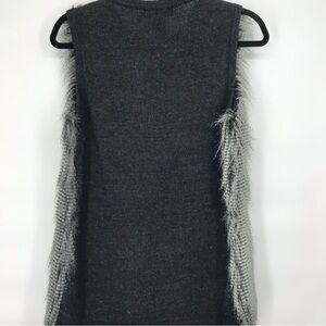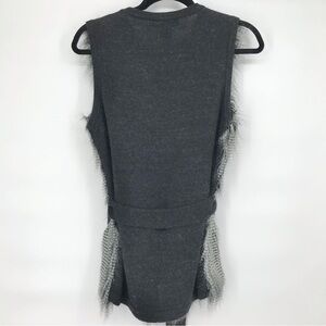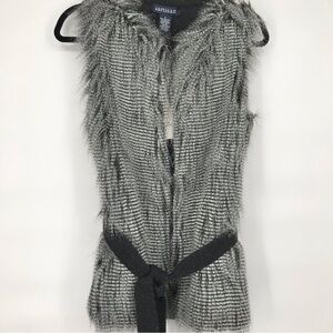 NWT Authentic Looking Long Hair Faux Fur Vest. Black and white faux fur. Back is a sweater material and it also comes with a belt in the same material that can be removed. Two hooks near the top. Also comes with spare hooks. The front has nylon lining to help reduce static electricity. Dress it up or down! Size Small