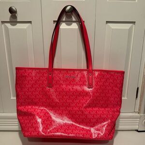 NWT Authentic Michael Kors Carter Large Pink Monogram Tote in Geranium