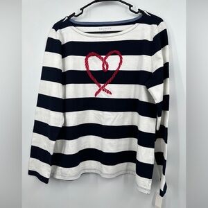 NWT Authentic Talbots Top Rockport Stripe Embroidered Heart Shirt Sz LP $65
