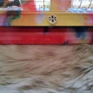 NWT Tory Burch Rayna Resin Clutch Color Watercolor Floral. Hello Lover! This clutch is SPECTACULAR! NWT No flaws! The colors are breathtaking pinks, yellows, greens, blues, purples, "Waterfall" Clutch is 8" Long and approximatley 4 1/2" wide. Inside opens to 3 card pockets. Very difficult to take inside pictures as it is still firm from non use. Comes with the dust bag. This is a very rare clutch, unable to find for sale at this time. Offers and Questions are welcomed with open arms!