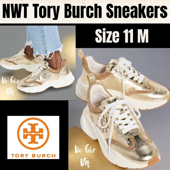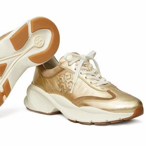 NWT Authentic Tory Burch T Monogram Good Luck Sneakers Size 11 M Gold