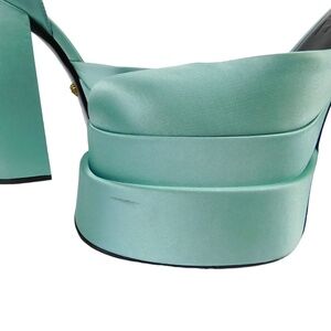 NWT Authentic Versace Medusa Aevitas Platform Mary Janes Pump blue satin Size 39