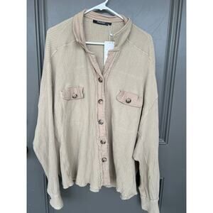 New with tags Automet size medium oversized tan waffle knit button down top. Measures 36” from armpit to armpit and 27” long.
