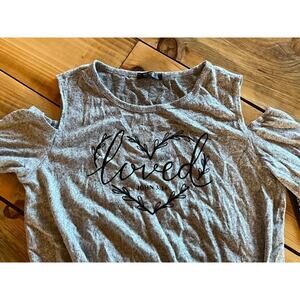 NWT! Ava James Women's Grey Long Sleeve top. "Loved John 3:16" Large. Shoulder cut outs