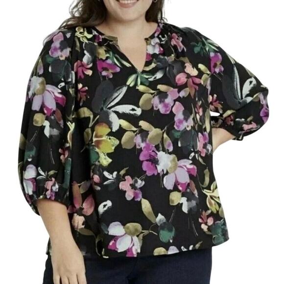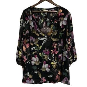 NWT Ava & Viv Black Floral Blouse 3X