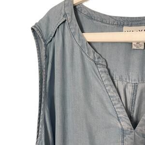 NWT Ava & Viv Dress Womens 4X Plus Blue Chambray V Neck Midi Sleeveless Casual