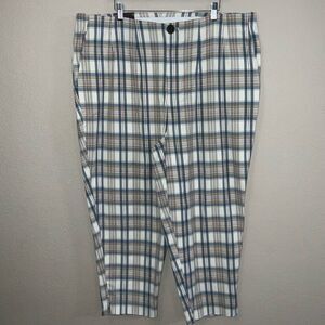 NWT Ava & Viv High Rise Cropped Taper Ankle Pants Cream Plaid 18