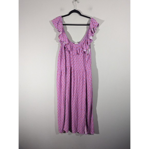 NWT Ava & Viv Lavender Polka Dot Ruffle Trim Midi Dress Women Plus Size 3X