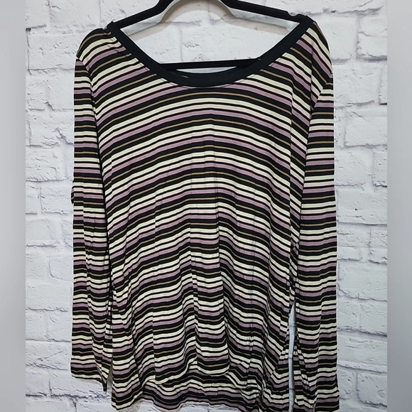 NWT Ava & Viv Women's Plus Long Sleeve Striped Scoop Neck T-Shirt Size 2X