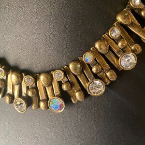 NWT Avant Garde Paris Brutalist Bronze AB Crystal Statement Collar Necklace