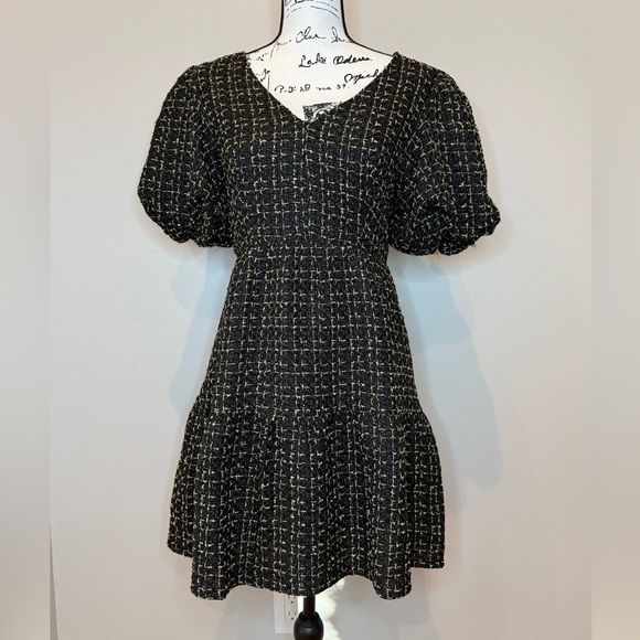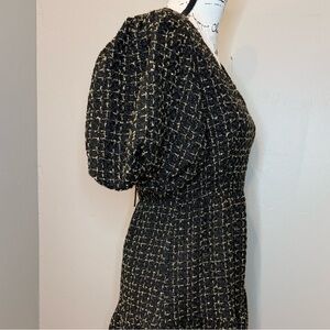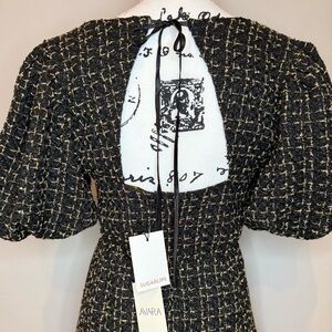 NWT, Avara Cindy Short Party Dress in Black/Gold Tweed, Size SMALL