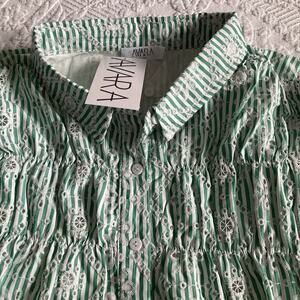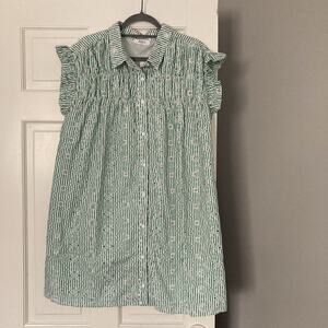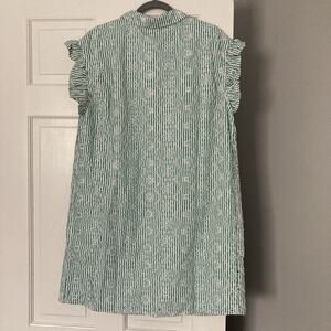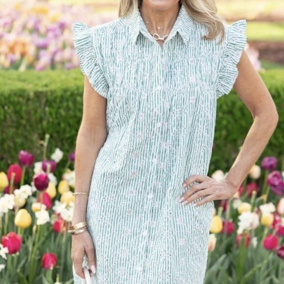 NWT Avara Gentry Dress Button Up Ruffle cap Sleeve Green Eyelet Resort Beach L