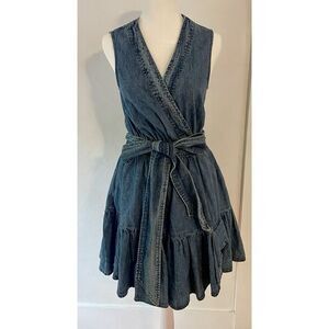 NWT Avec Les Filles Anthropologie Tie Waist Wrap Denim Mini Dress Size 2 $158
