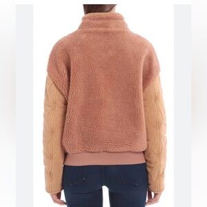 A collection of cozy, this bomber jacket mixes the plush feel of faux shearling with the insulating, soft feel of quilting to keep you warm and looking cool!