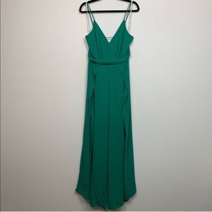 NWT Avec Les Filles Criss Cross Slit-Leg Jumpsuit in Jungle Green - Size 14 - New with Tags