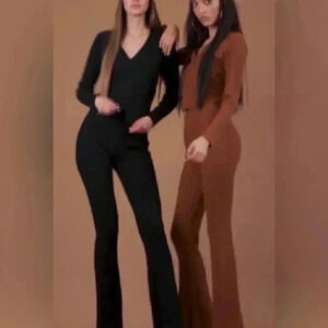 NWT Avec Les Filles “Elise” rib flared sweater bootcut pants M