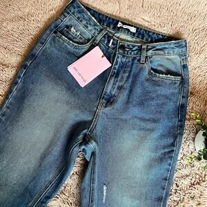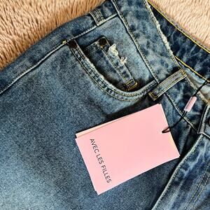 NWT Avec Les Filles High-Rise Distressed Raw Hem Straight Leg Jeans Size: 28