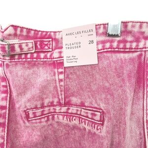 NWT Avec Les Filles Pink Acid Wash Wide Leg Pleated Denim Trouser 28