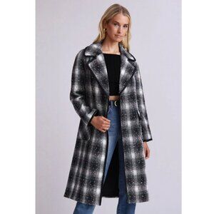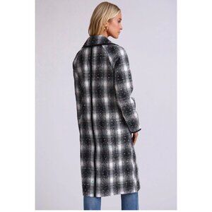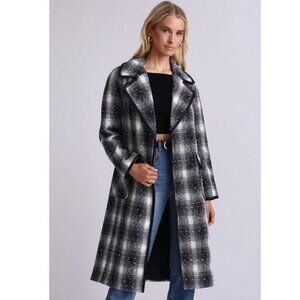 NWT Avec Les Filles Plaid Tweed Double-Breasted Coat Black Multi WOOL