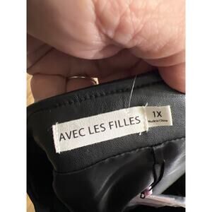 New with tags Avec Les Filles size 1X black faux leather mini skirt. Zips on the side. Pleats along the bottom. Waist is 21” from armpit to armpit and 19” long.
