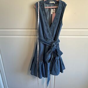 NWT Avec Les Filles tie waist denim mini dress Size 8