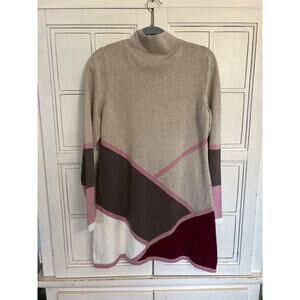 New with tags Aventura size medium sweater dress. Tan l, cream, pink, dark red and brown. Super soft. Mock neck. Measures 19” from armpit to armpit. 18” across the waist and it is 34” long.