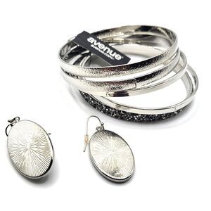 NWT Avenue Demi-Parure Rustic Silver Earrings & Bangle Bracelet Set